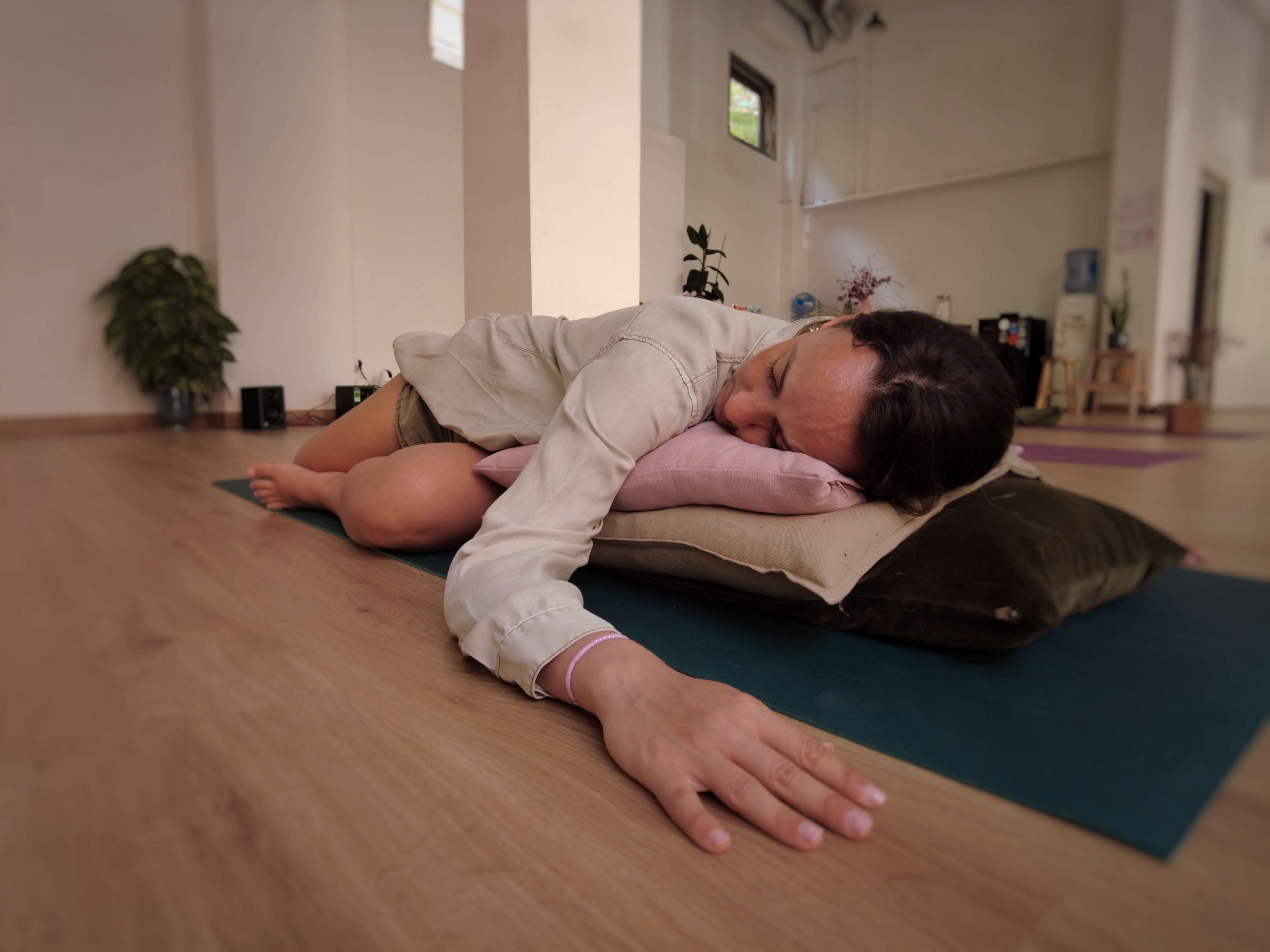 El Sonido del Descanso es una experiencia grupal de bienestar diseñada para empresas que buscan cuidar a sus equipos de manera integral. Integra prácticas restaurativas de Yin Yoga, respiración consciente y música creada en vivo con frecuencias terapéuticas, generando un espacio donde el cuerpo puede relajarse, la mente puede bajar el ritmo y el sistema nervioso encuentra un lugar para regularse y recuperarse.